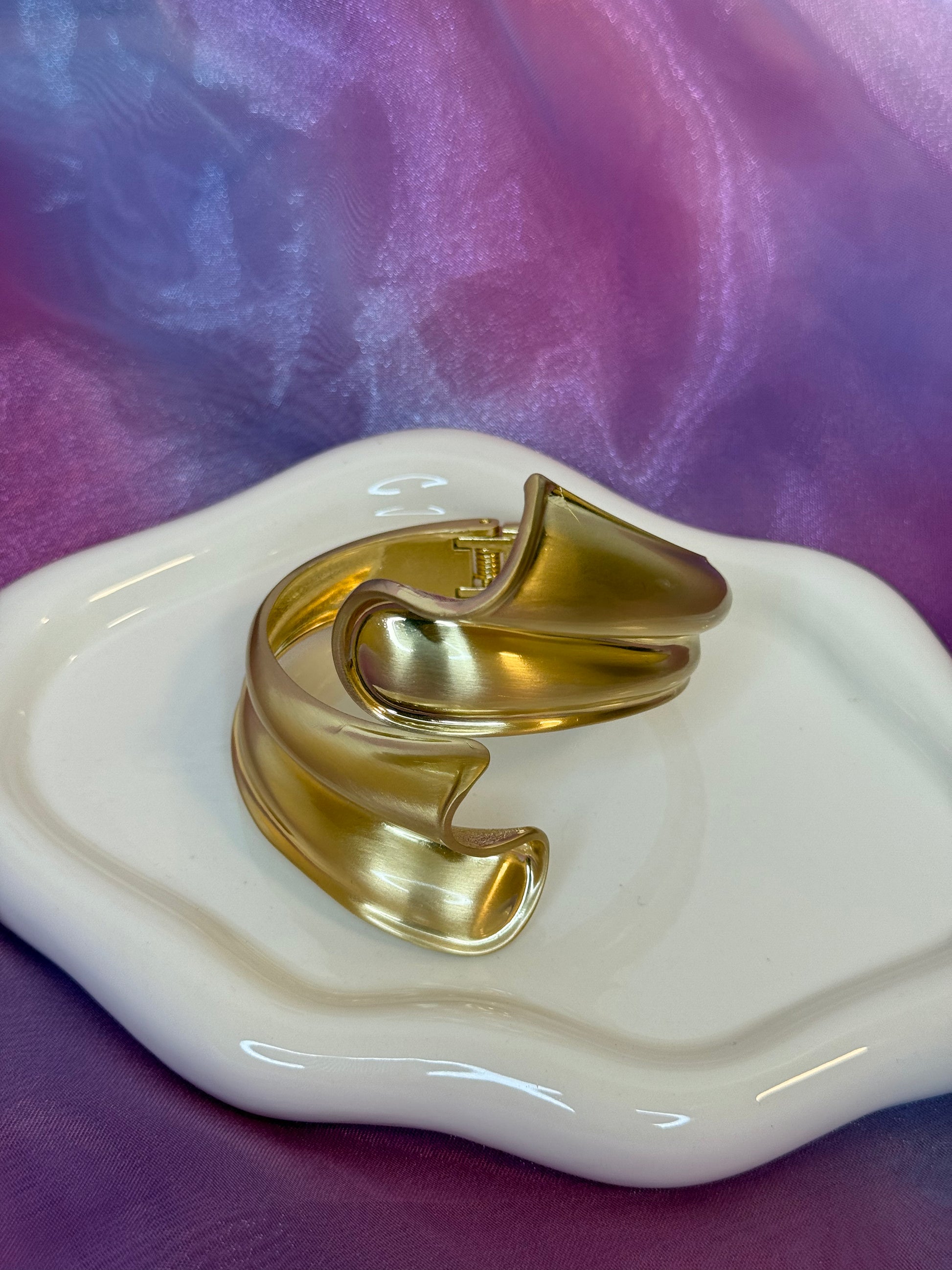 Rigido e deciso, questo bracciale è realizzato in acciaio inox con finitura oro opaco, per un look rustico ma raffinato. Linea accativante con una struttura solida, perfetto abbinato a camicie in denim, pelle e toni naturali. Eleganza Western che resiste al tempo.