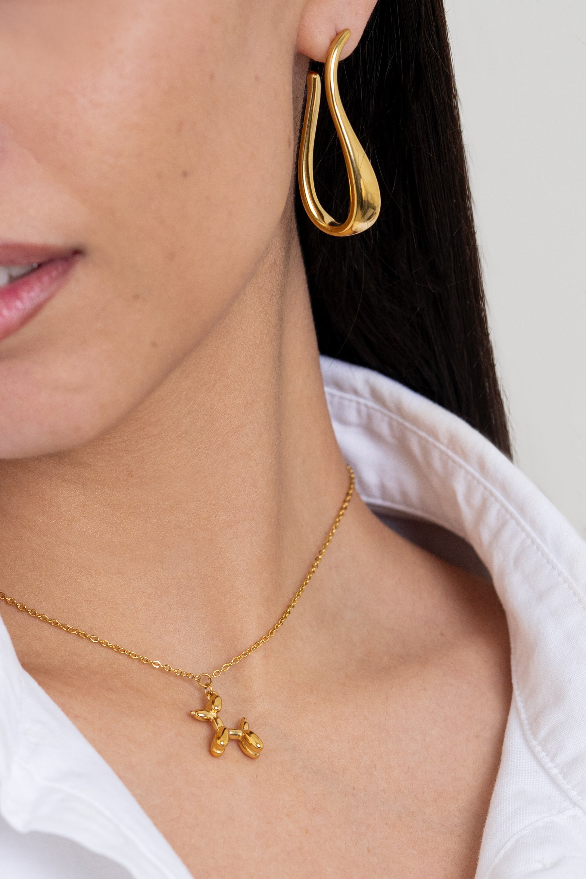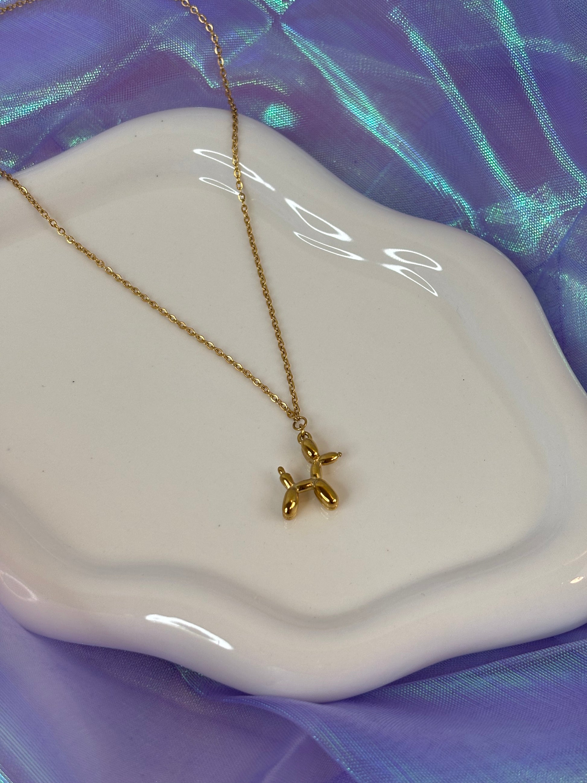 Collana in acciaio inox con un simpatico pendente a forma di cagnolino, modellato come un palloncino gonfiato. Un accessorio originale e giocoso, perfetto per aggiungere un tocco di allegria e creatività al tuo stile.