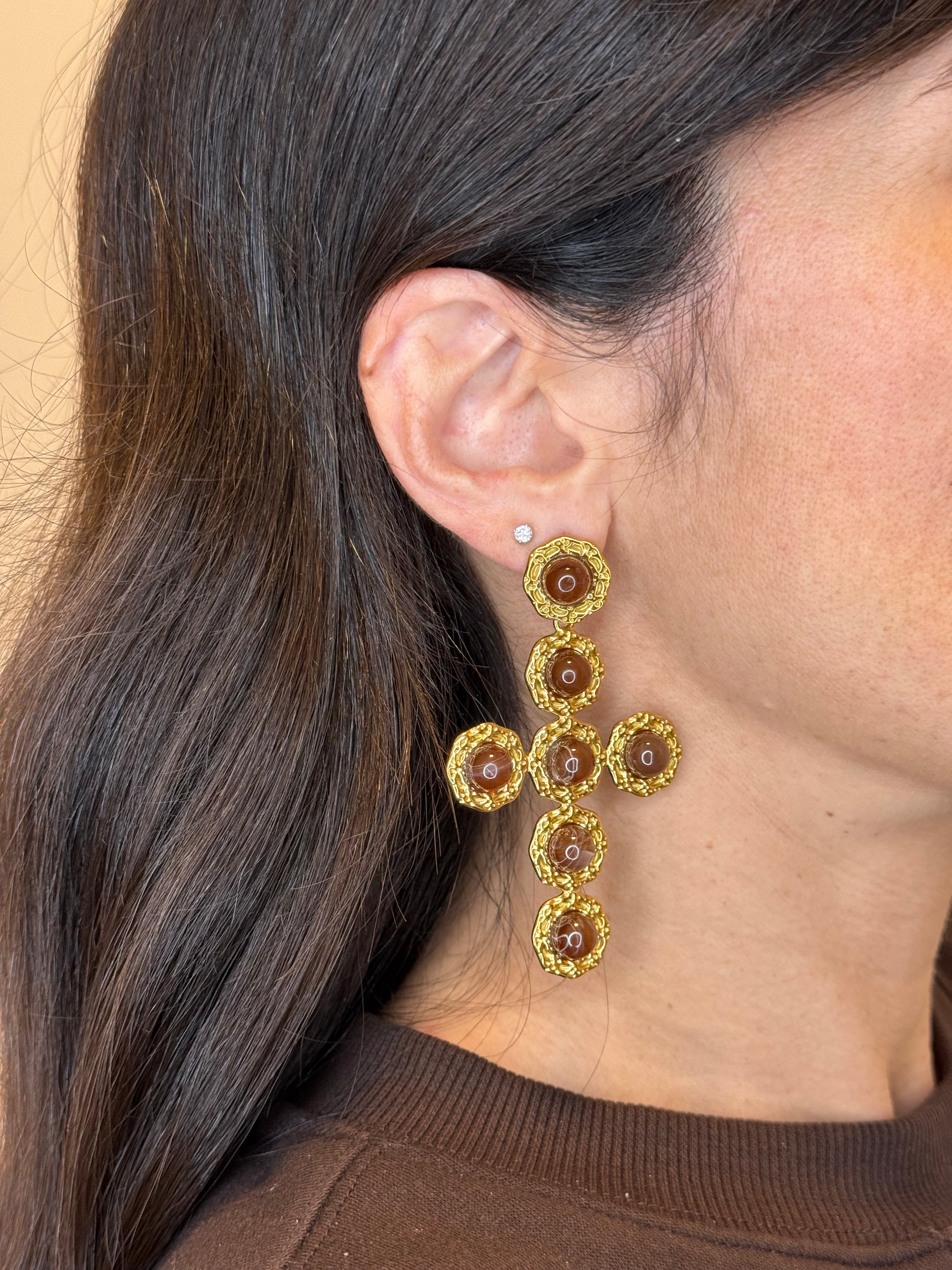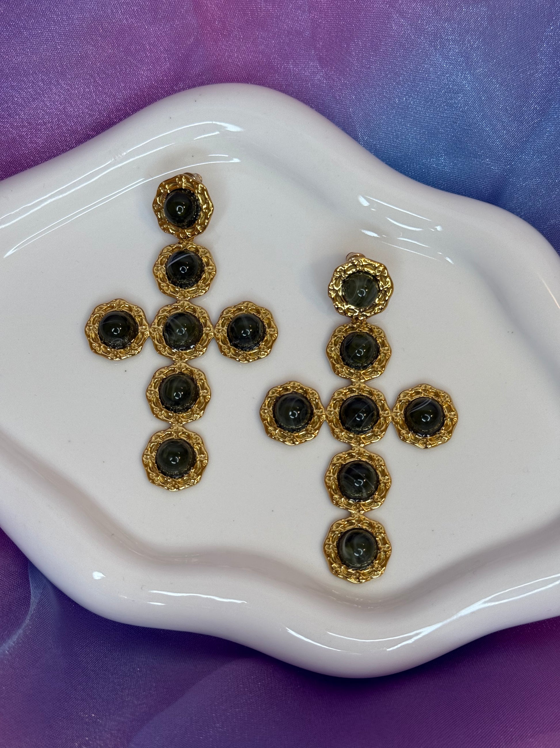 Orecchini in acciaio inox con grandi croci impreziosite da perle colorate. Audaci e magnetici, catturano l'attenzione con stile. L'accessorio perfetto per chi non passa inosservato.