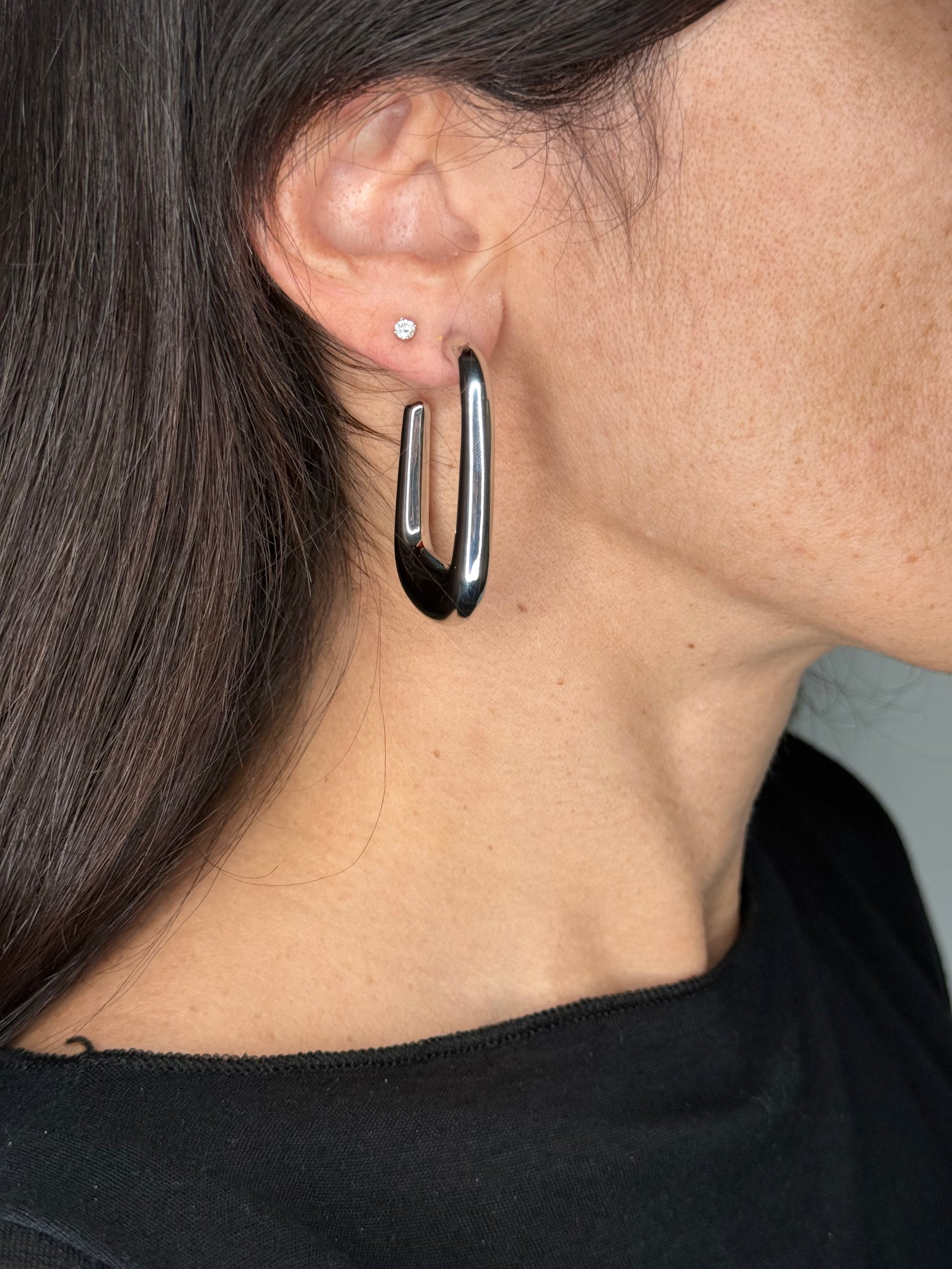 Orecchini in acciaio inox con forma semi rettangolare elegante e minimalista. Perfetti per chi ama uno stile contemporaneo e versatile. Realizzati in acciaio inossidabile di qualità, garantiscono durabilità e resistenza nel tempo. Un accessorio essenziale che si abbina facilmente a qualsiasi look, dal casual al più raffinato.