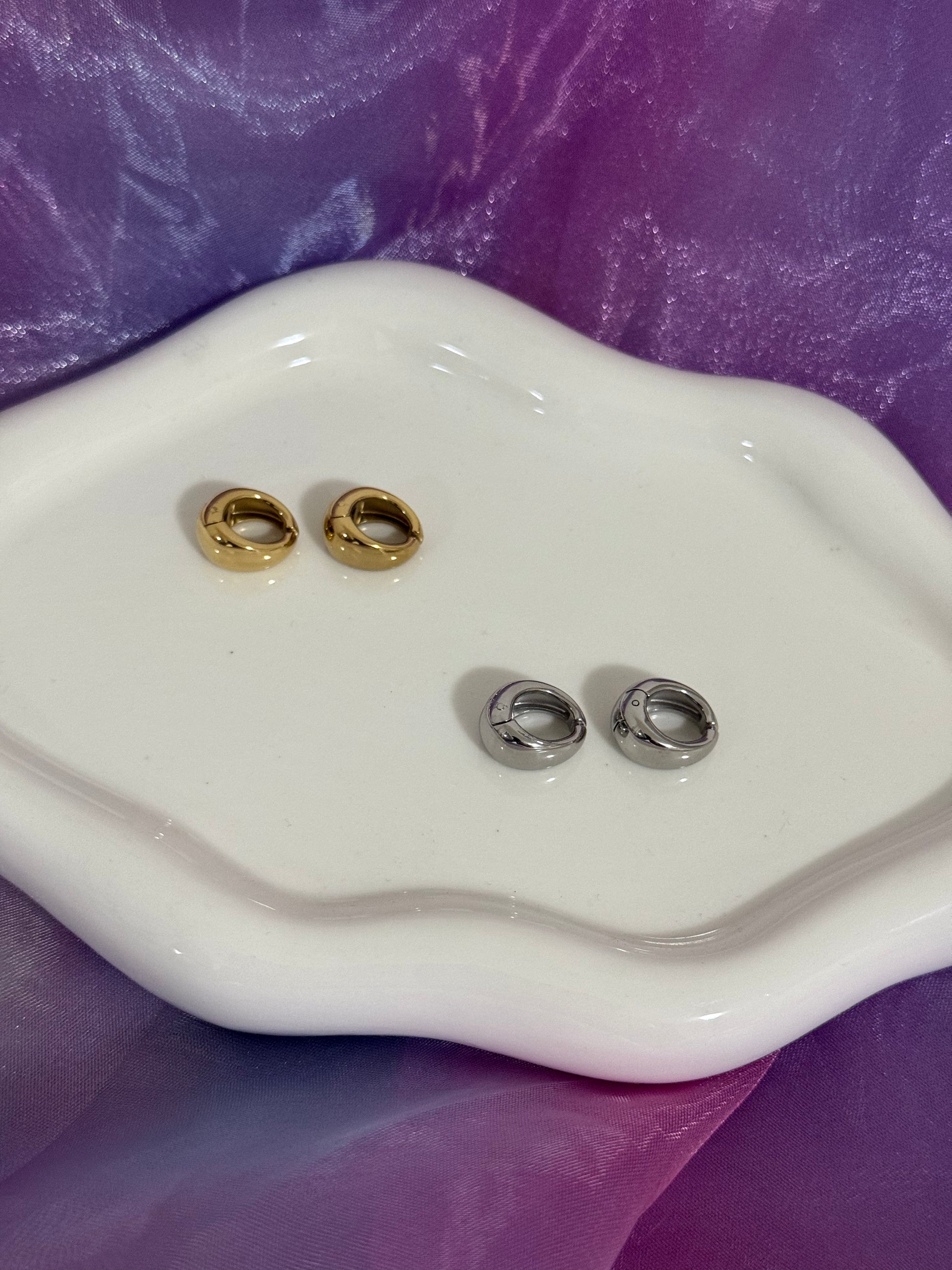 Orecchini a cerchio con pratica chiusura a molla, l'accessorio ideale per chi non ha i fori alle orecchie. Piccoli e sofisticati, garantiscono una vestibilità sicura e confortevole, perfetti per uno stile contemporaneo e senza compromessi.