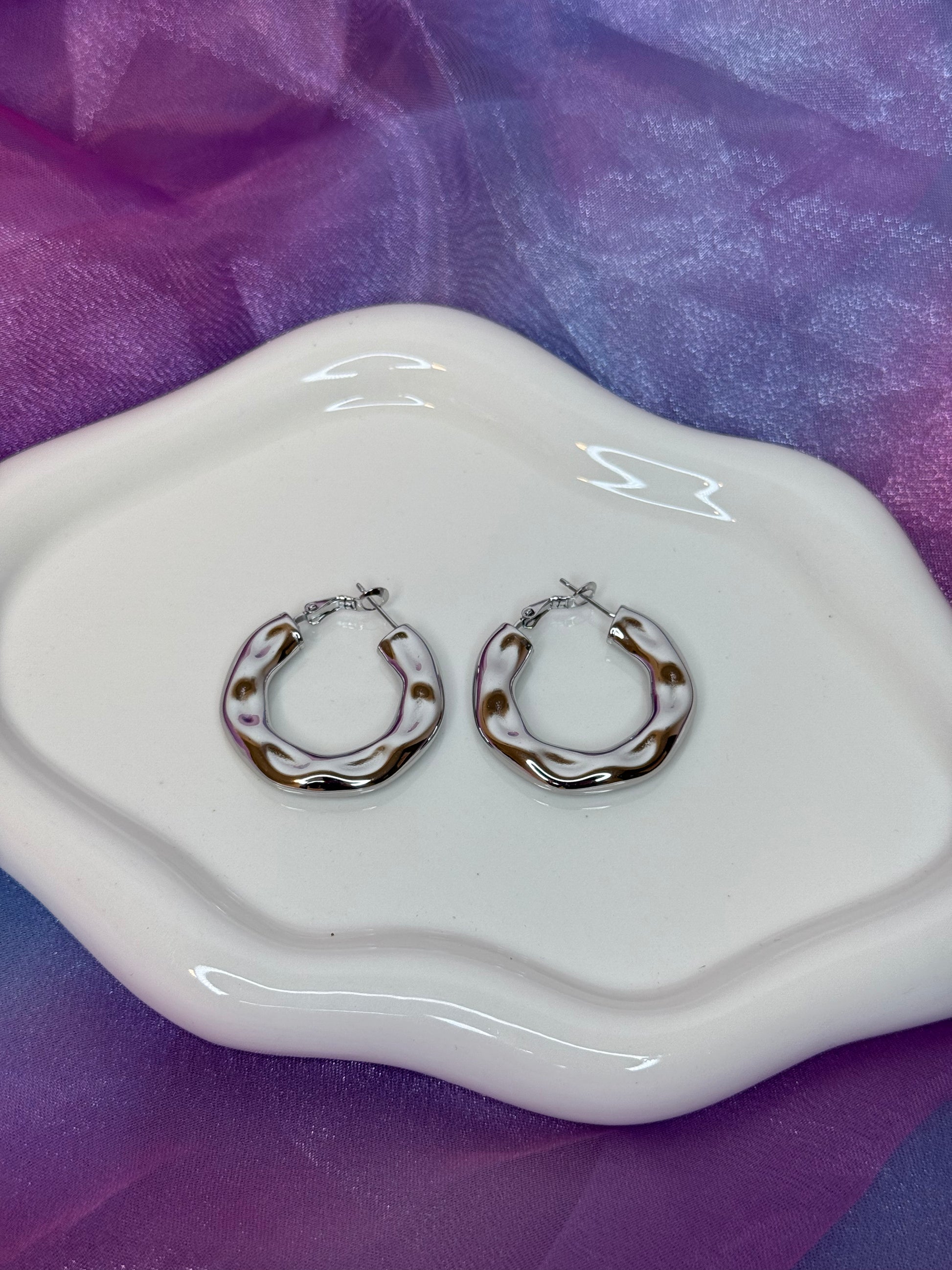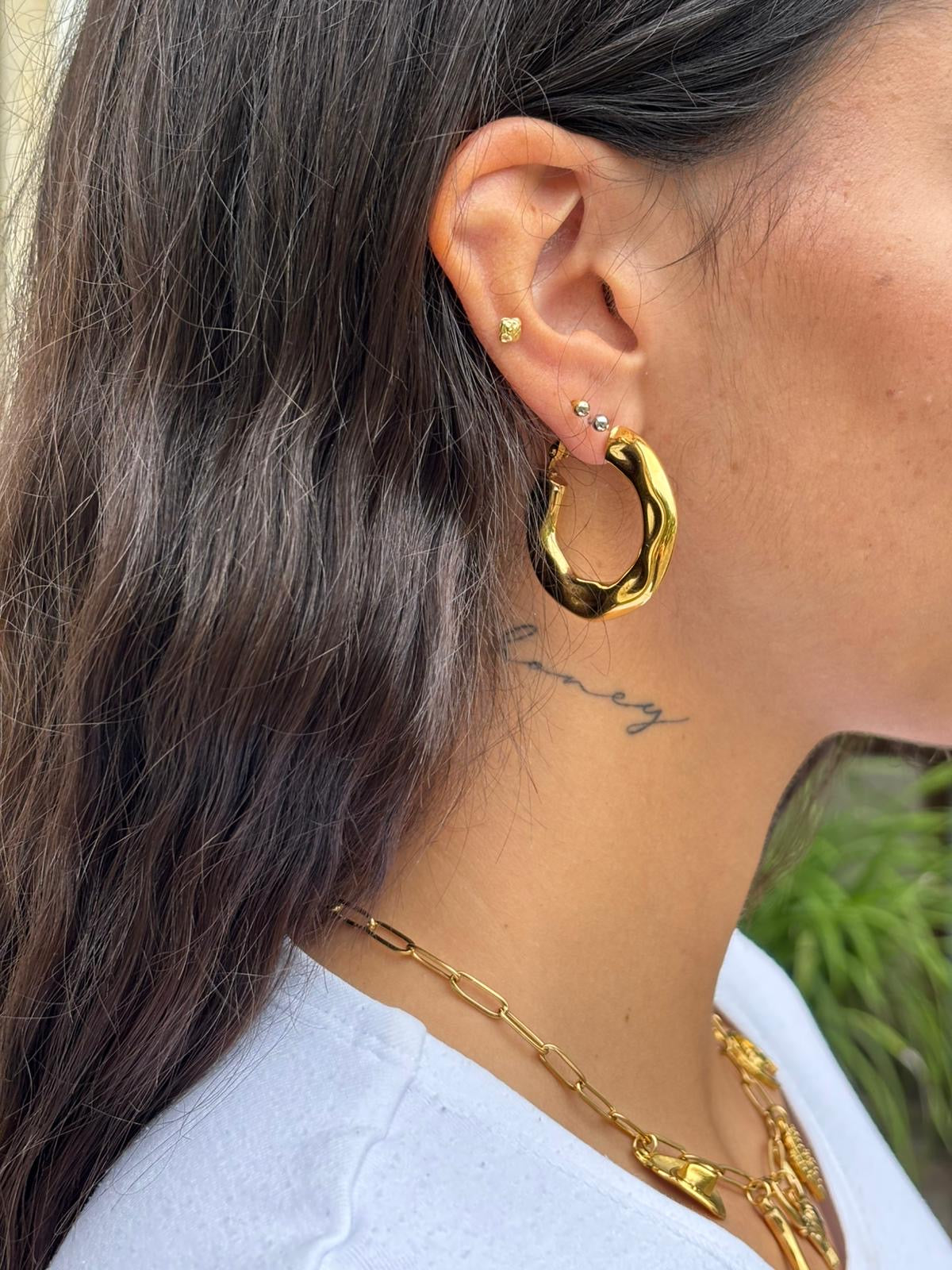 Orecchini a cerchio ondulato in acciaio inox robusto, crea un effetto di onde naturali che richiamano il paesaggio rurale. Ideali per un look country autentico: rustico, luminoso, comodo da indossare ogni giorno.